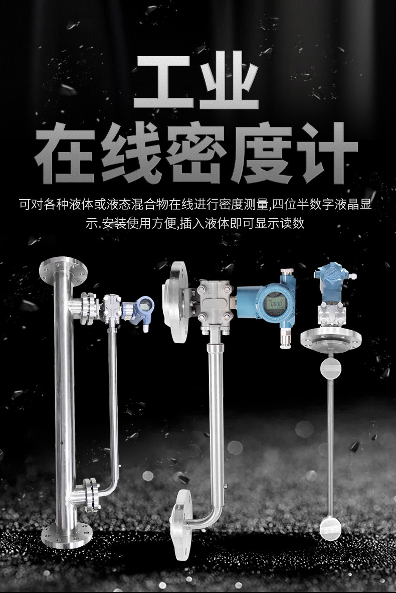 差压式在线密度计在总结各种密度测定方法后,又对工业现场作了大量的调查研究,采用进口扩散硅元件制成,本着简单实用的原则设计。产品广泛应用于液体或液态混合物在线密度测量。