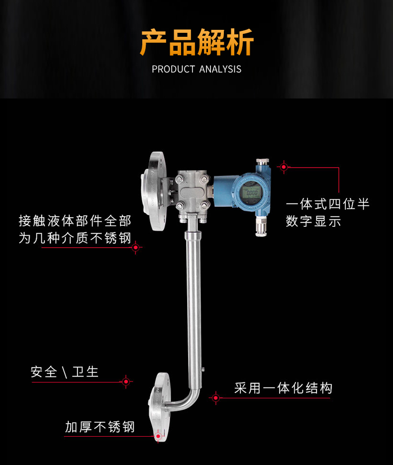2、采用一体化结构的两线制变送器,无活动部件,维护简单。